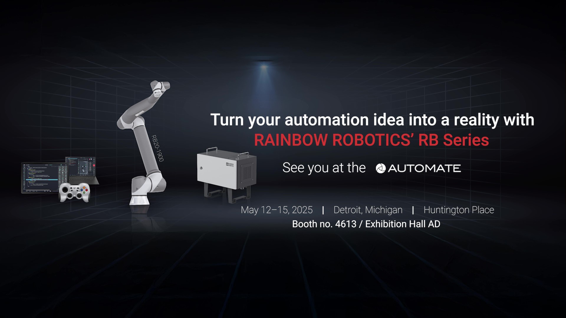 레인보우로보틱스 협동로봇 RB 시리즈는 머신비전, CNC 머신텐딩, 조립, 푸드테크, 픽앤플레이스, 엔터테인먼트, 의료, 아크용접, 식음료, 휴대용 용접 솔루션, 사출성형, 볼트 체결, 연마작업 등 다양한 곳에서 활용되고 있습니다. 다재다능하게 사용할 수 있는 RB 시리즈는 산업계의 올라운더입니다. 이번 5월 12일부터 15일까지 디트로이트 헌팅턴 플레이스에서 열리는 오토메이트에서 RB 시리즈의 다양한 어플리케이션을 직접 만나보세요. Booth Tour Booking은 아래 링크를 통해 신청할 수 있습니다.